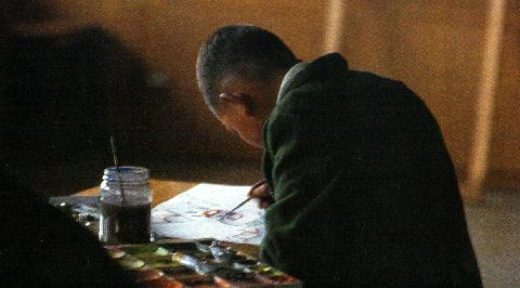 Toen Sarah hem waterverf en papier gaf, ging Tsering direct aan het
