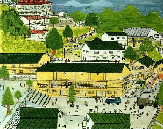 Mussoorie. Het schoolgebouw met meerdere verdiepingen en de spelende kinderen.
