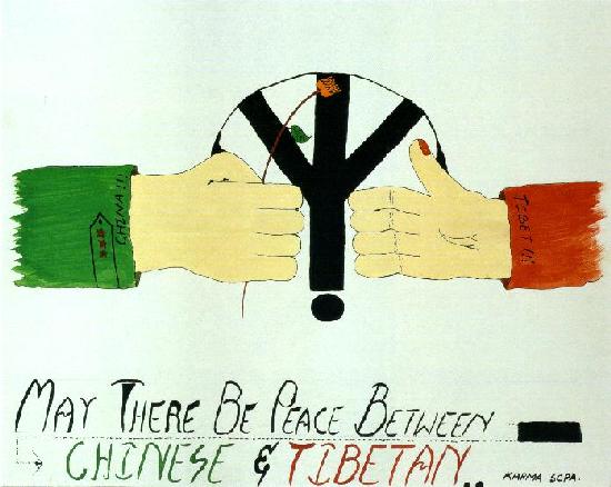 De kinderen gebruiken in hun tekeningen voornamelijk Engels, wat ze in India leren als wereldtaal en dus ook gebruiken in hun tekeningen om andere mensen iets duidelijk te maken. Volgens de Tibetanen hoort vrede onlosmakelijk bij vrijheid.
