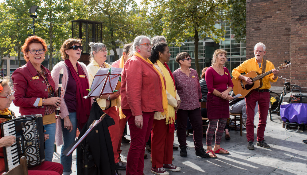 Oud-stadsdichter Piet van den Boom opende de bijeenkomst met een gedicht van de Syrische dichter Adonis en een ode aan de muziek: muziek is de stem van de vrijheid.